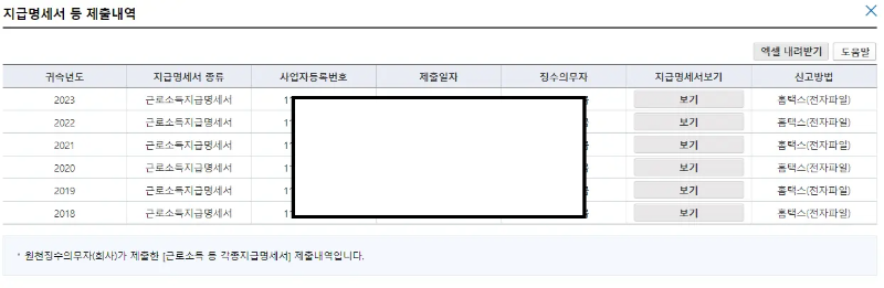 2.3 "지급명세서 조회"를 클릭합니다
